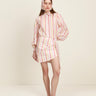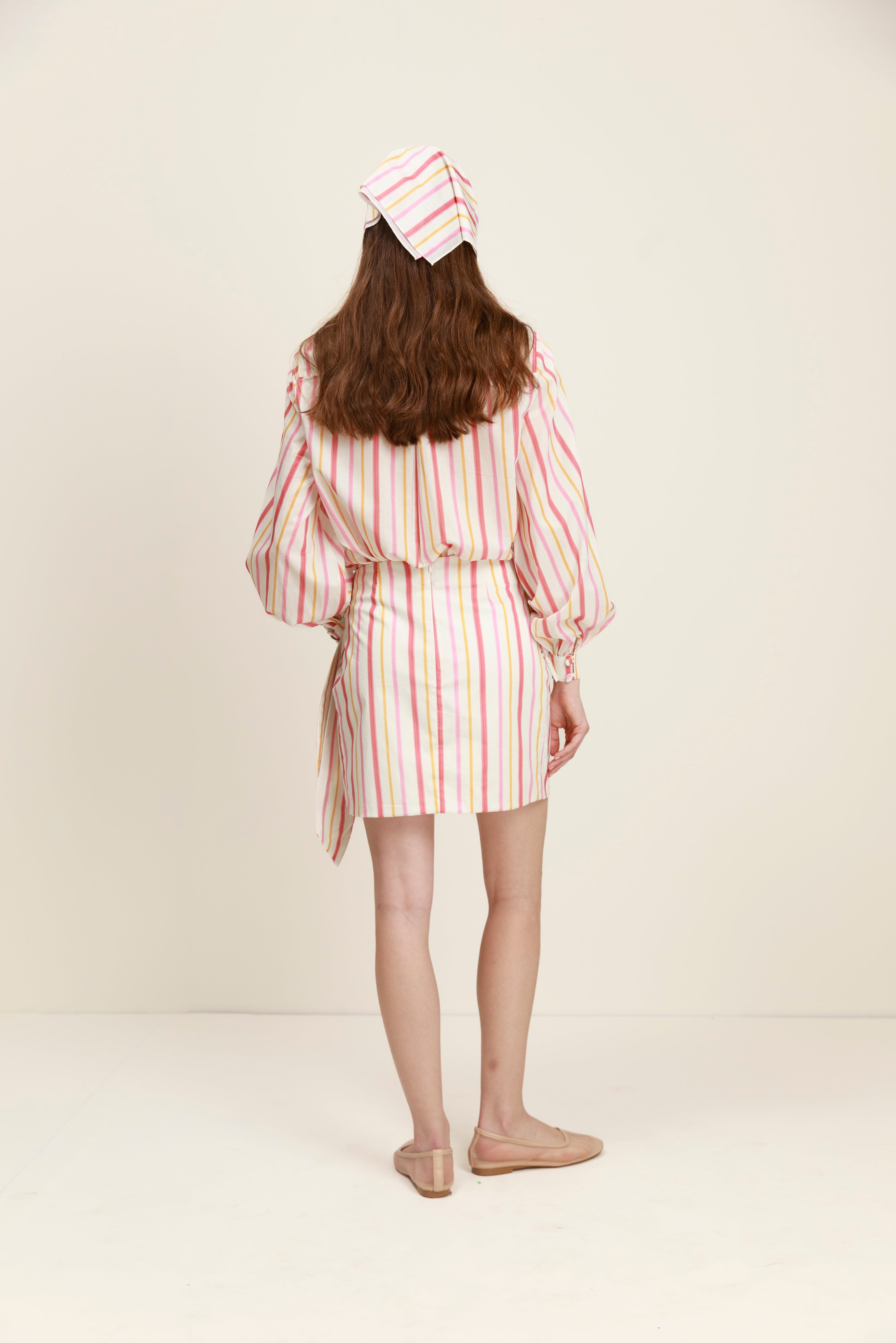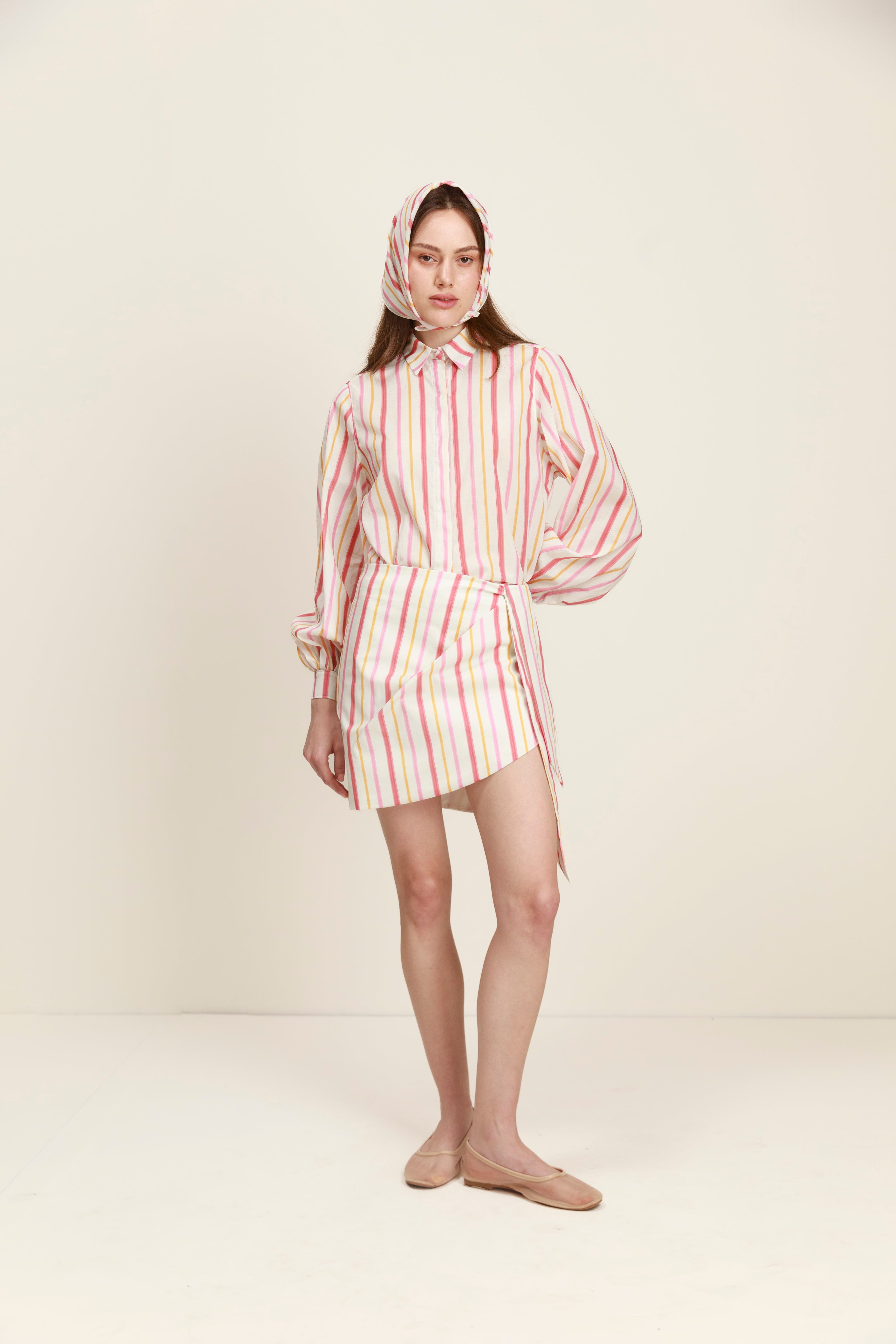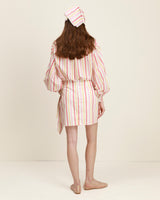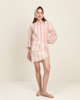 La falda Mandy es fresca, ligera y con un toque inesperado. Su silueta cruzada juega con el movimiento y las rayas, creando una sensación dinámica y femenina.