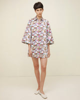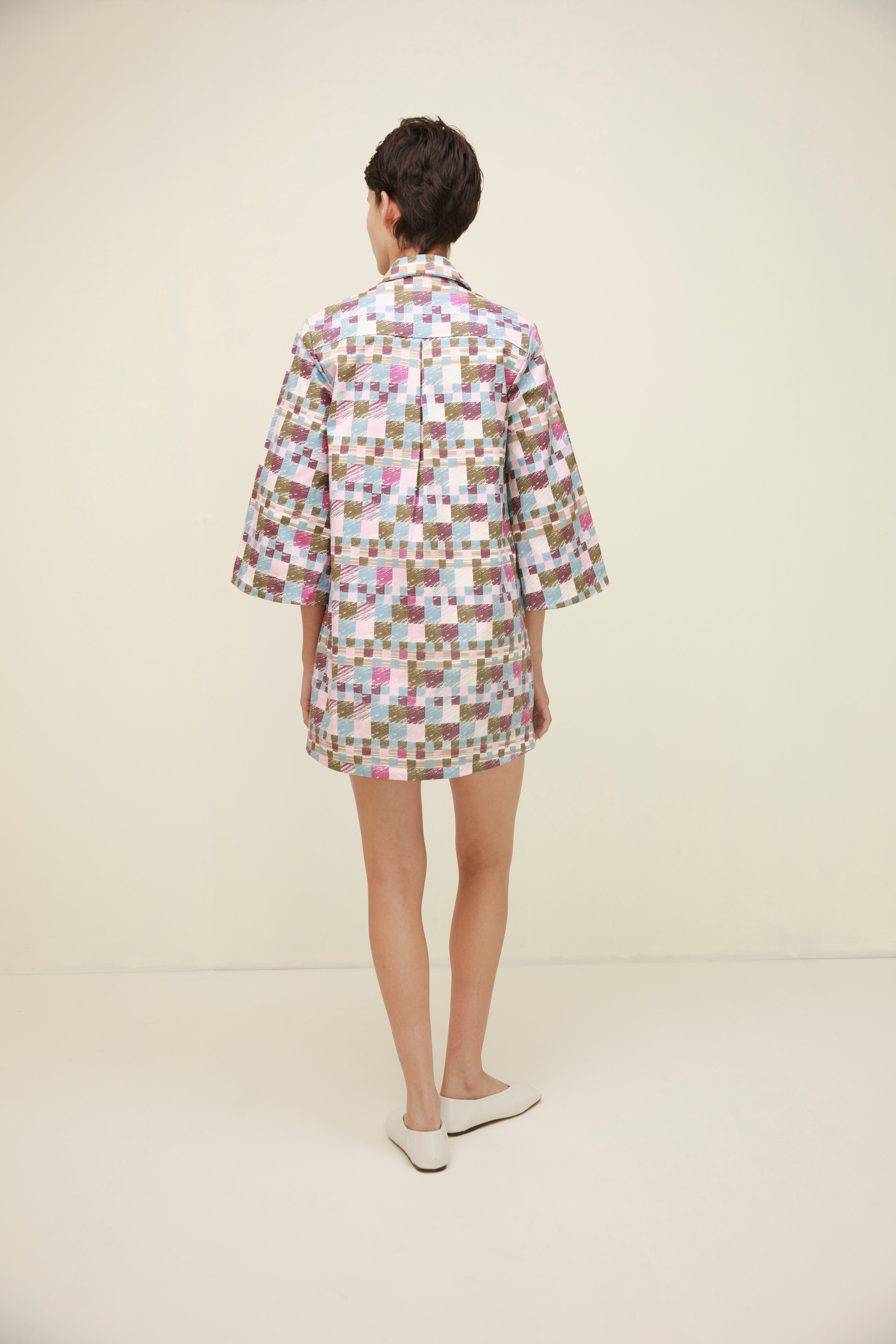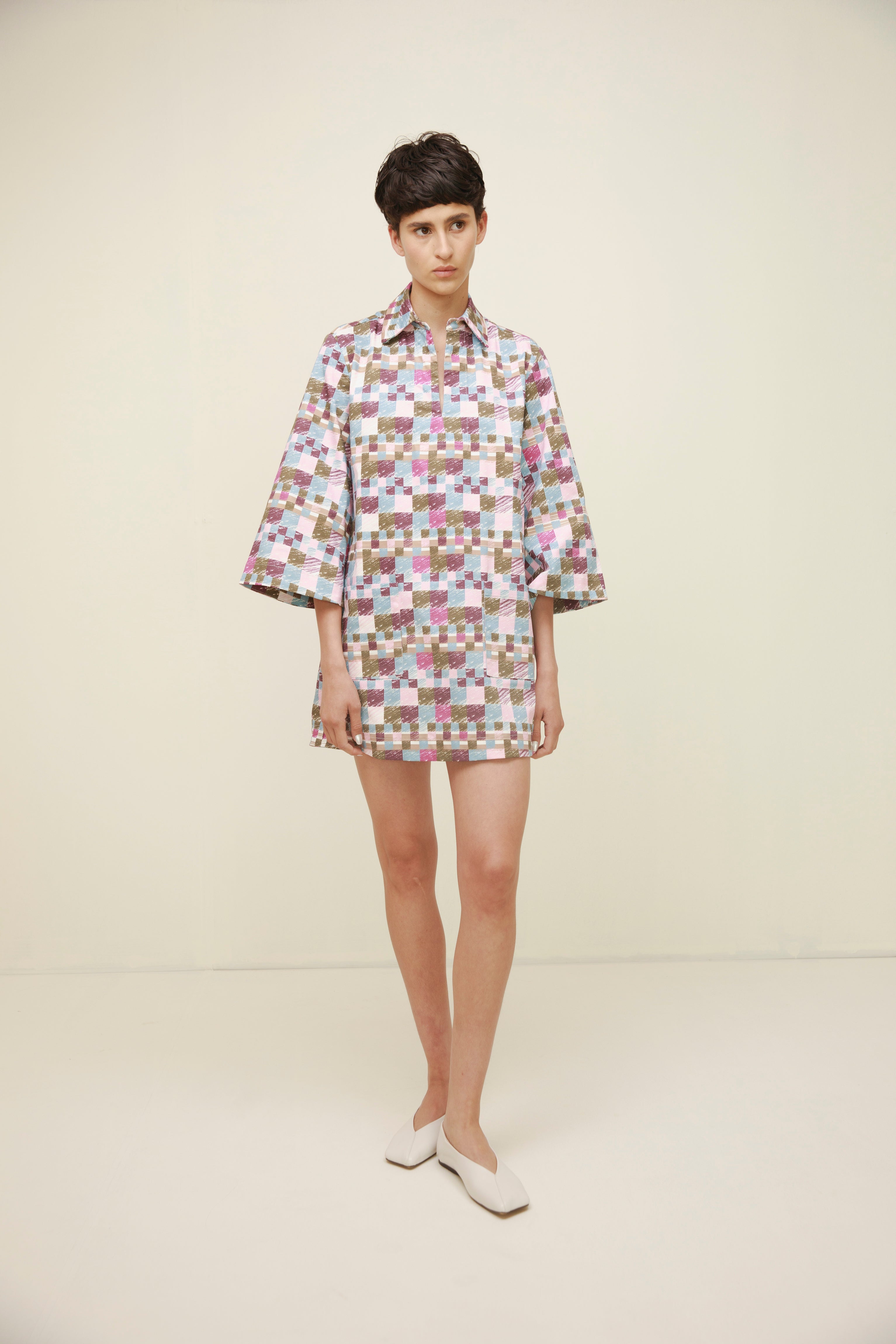 La túnica Tessera aporta un toque de creatividad a la elegancia cotidiana. Con su corte holgado y su estampado vibrante de cuadrados multicolores, esta túnica es elegante y cómoda a la vez. Combínala con accesorios sencillos para lograr un look artístico y chic que te acompañará tanto de día como de noche.