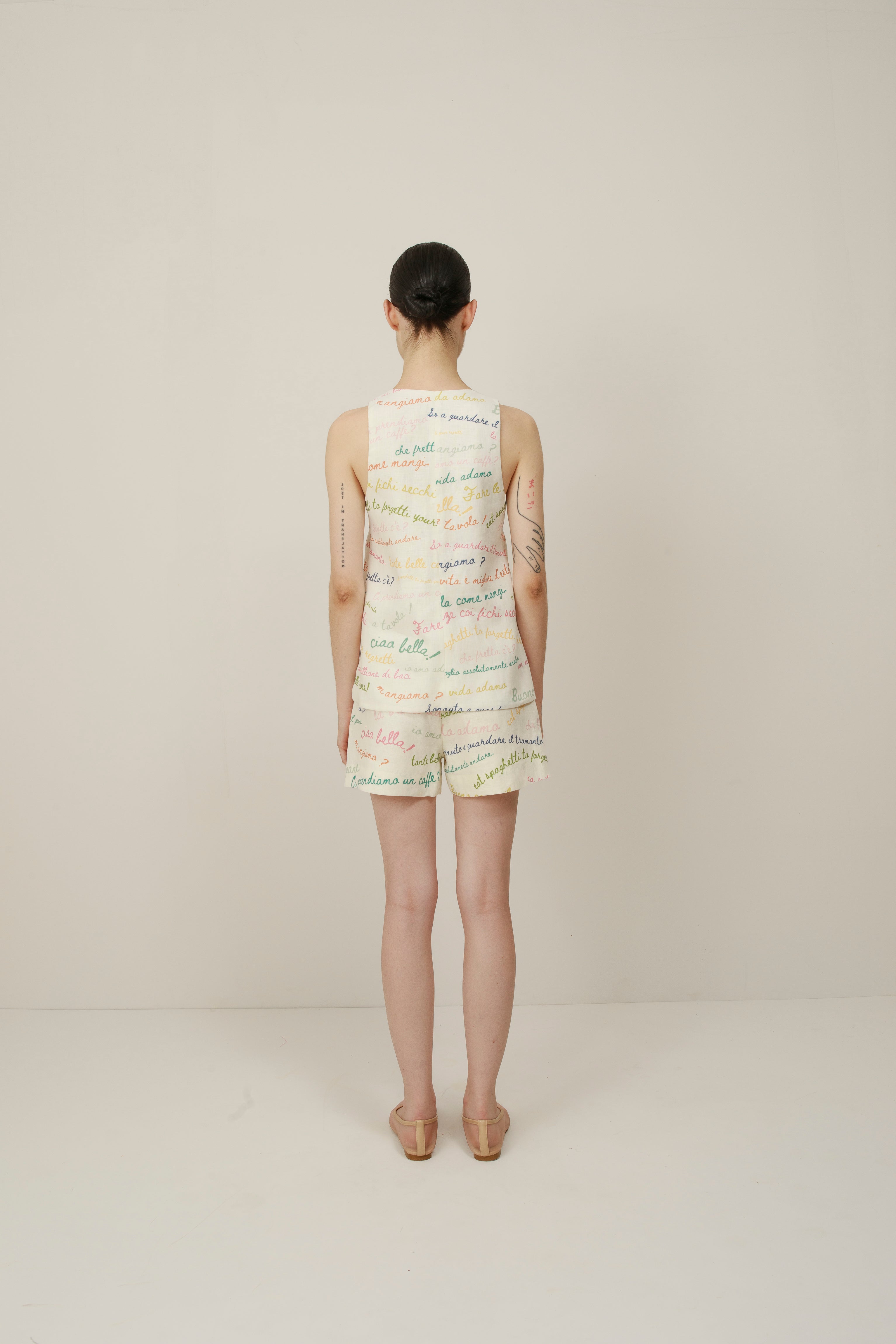 The Romeo vest is the ideal garment for those who enjoy experimenting with prints. Made from linen, its lightweight structure makes it easy to combine, adding a touch of effortless, refined style.