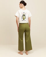 The Beetle T-shirt is a modern classic with a hidden surprise. At first glance, it's minimalist and structured, but turn around and you'll discover bold embroidery on the back that reads "Catch this LOVE Bug!" It's the kind of piece that sparks curiosity and sparks conversation: unexpected, yet effortlessly stylish.