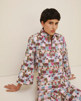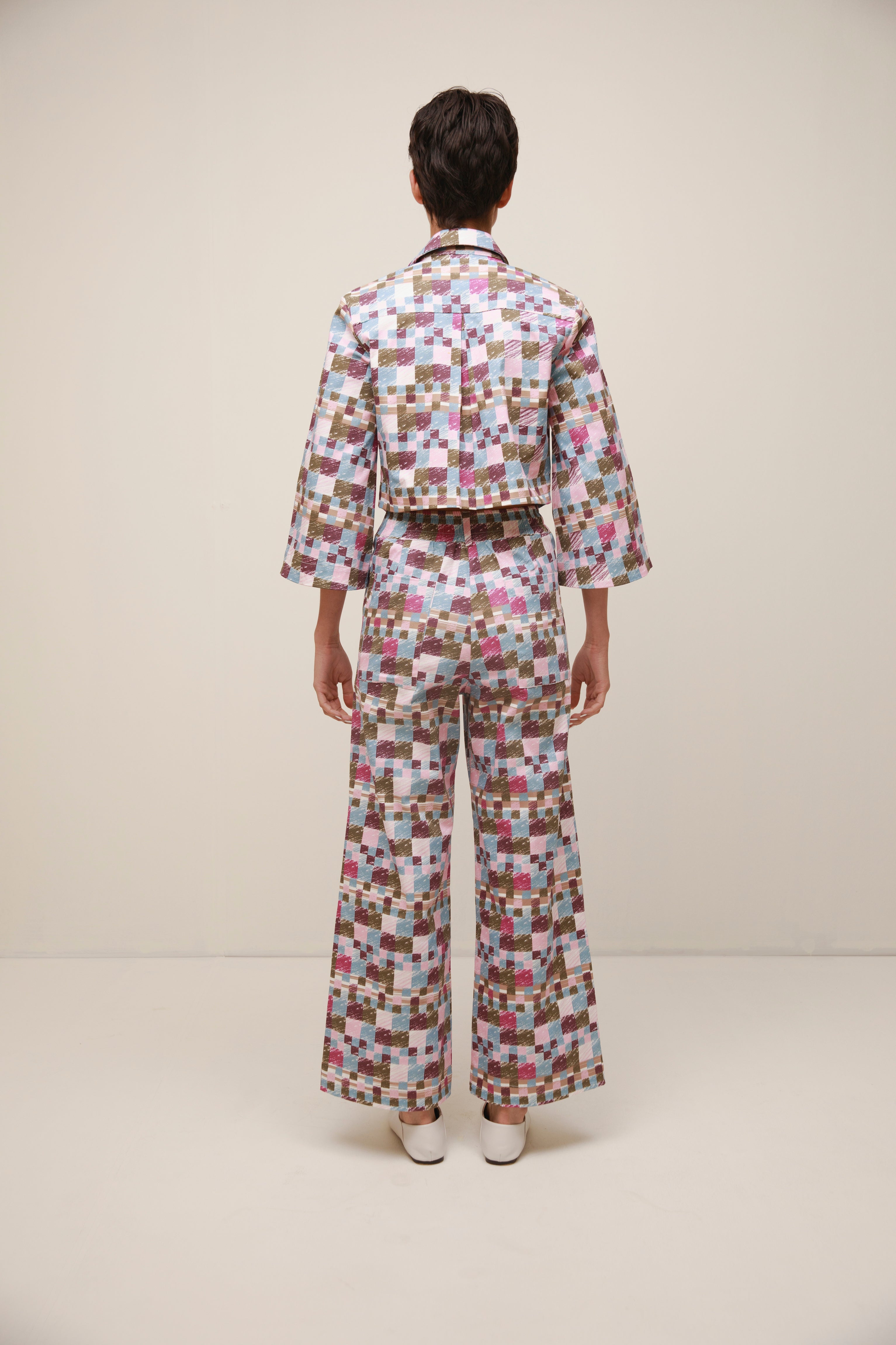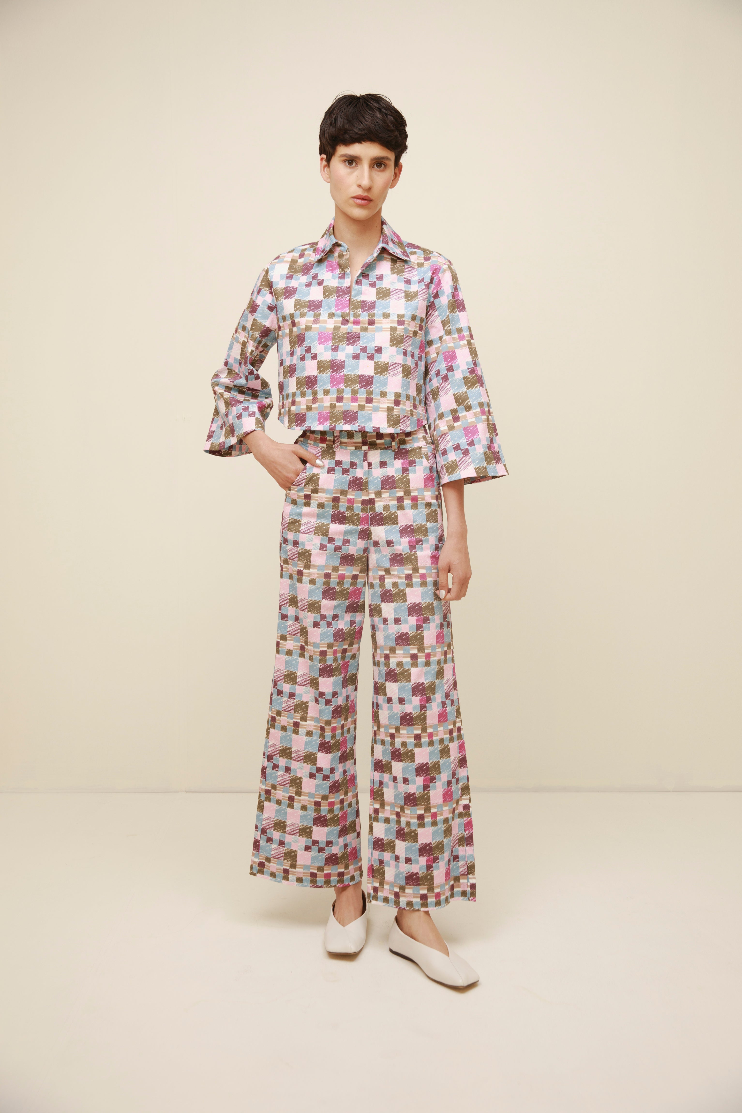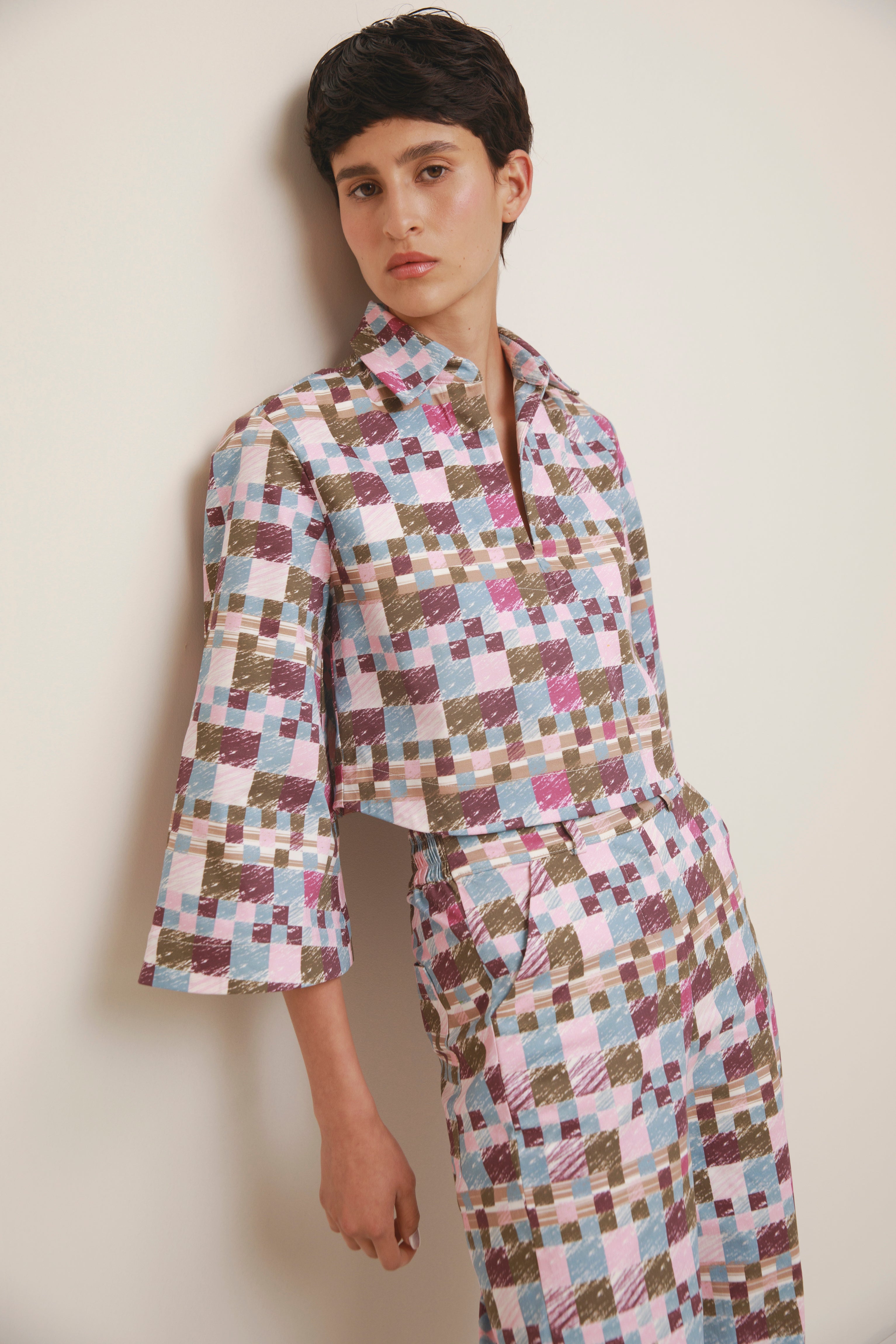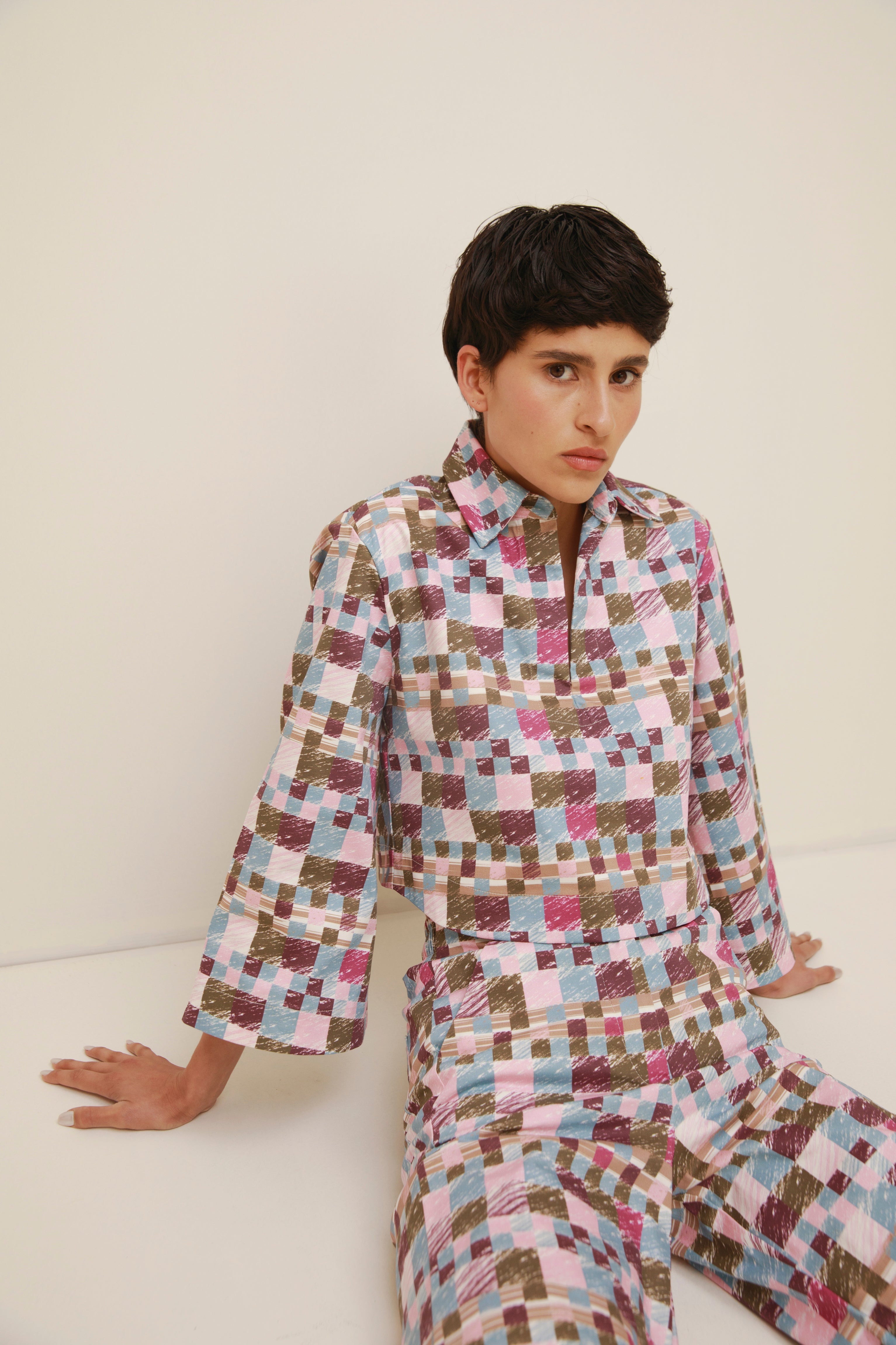 The Grida top is a masterpiece of effortless sophistication. Its boxy silhouette and square-trimmed print add a unique touch to your wardrobe. Whether paired with the Arty pants for a matching set or with classic jeans, this top easily makes a statement.