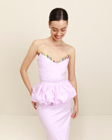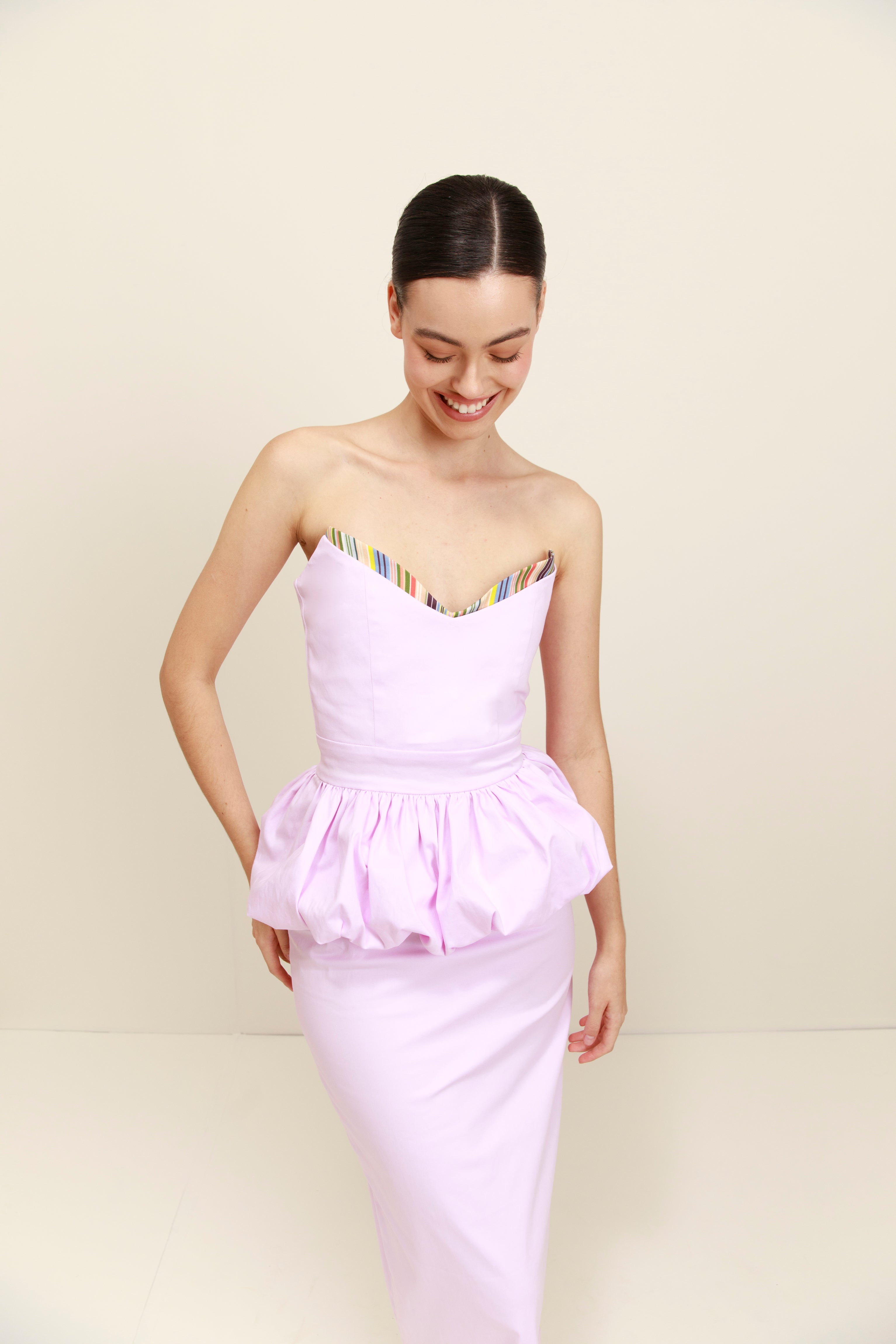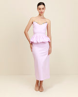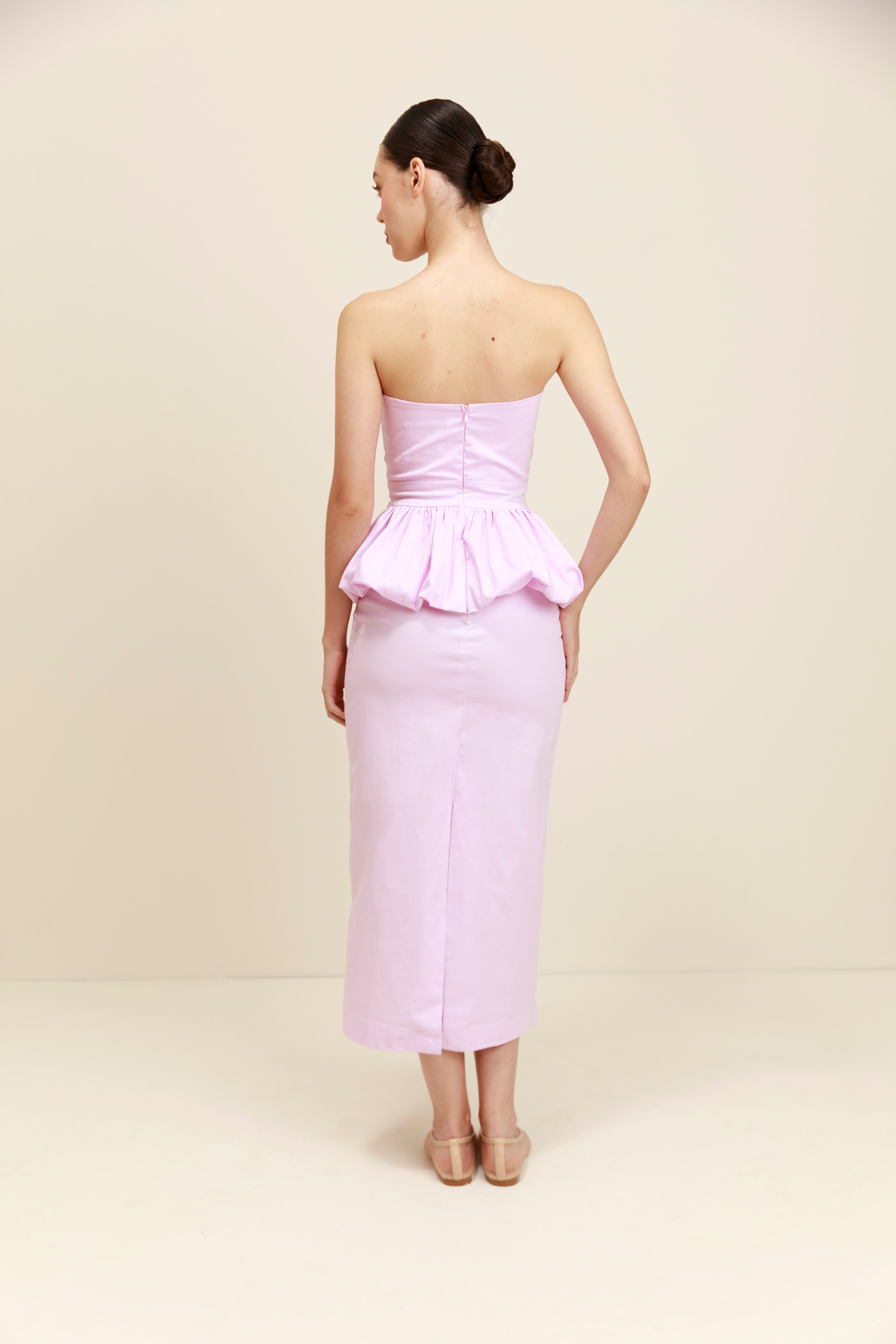 El vestido Antone es una declaración romántica en suave color rosa. Su silueta escultural y delicada se ajusta perfectamente al cuerpo, mientras que el sutil escote y la cintura fruncida añaden un acabado favorecedor.