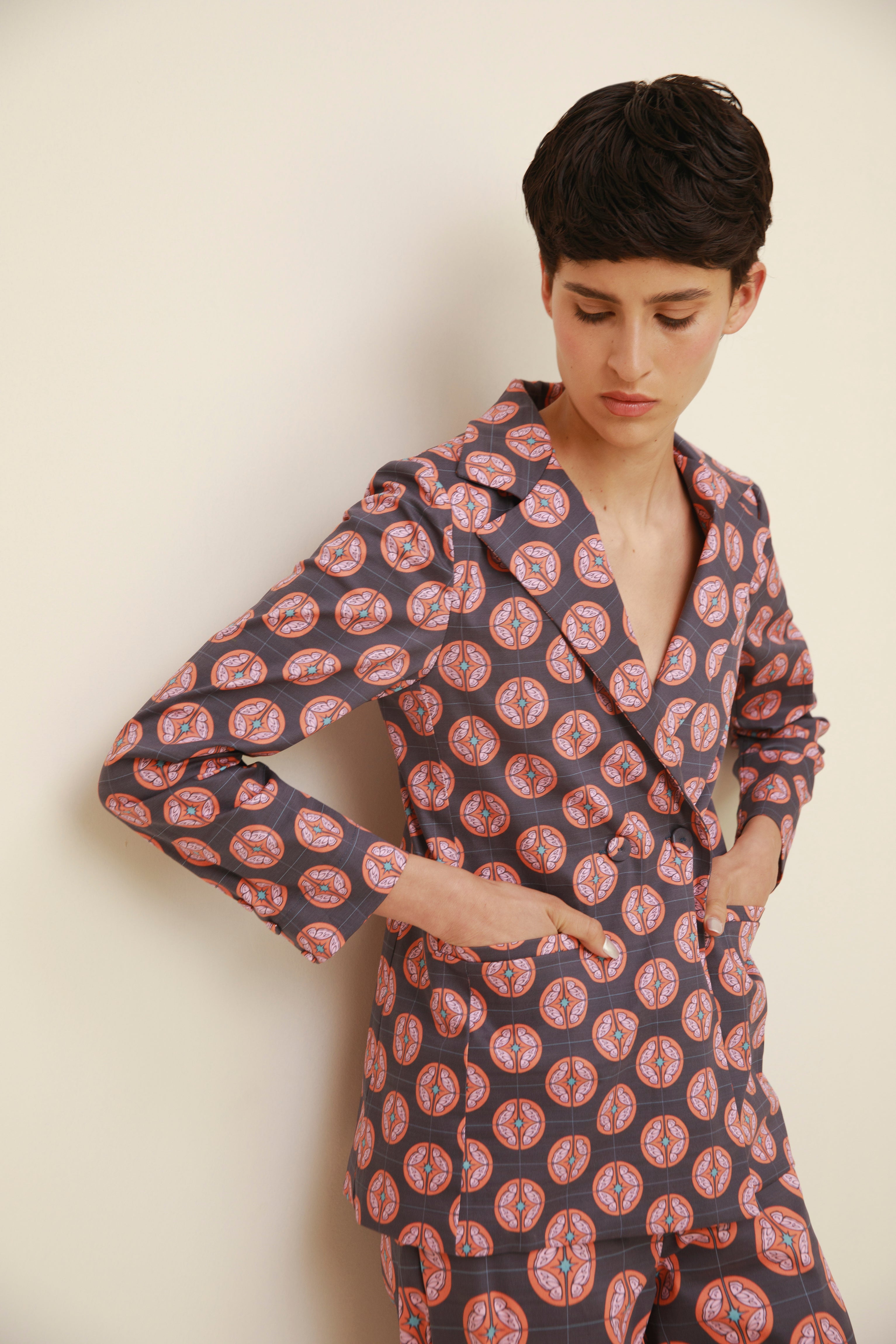 La chaqueta Bowie Blazer es una prenda llamativa diseñada para destacar. Con un corte entallado y solapas afiladas, es la combinación perfecta entre estructura y diseño artístico. Su intrincado tejido con estampado de mariposas invertidas le da un toque único, añadiendo profundidad y carácter. Combínala con los pantalones Bowie para crear un conjunto a juego inolvidable.