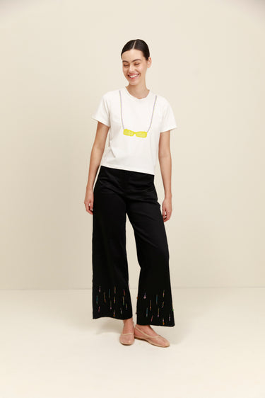 Ilustración de gafas de sol en tonos amarillo y verde, llamativas y atrevidas, para disfrutar del ambiente de un día soleado en cualquier momento y lugar.