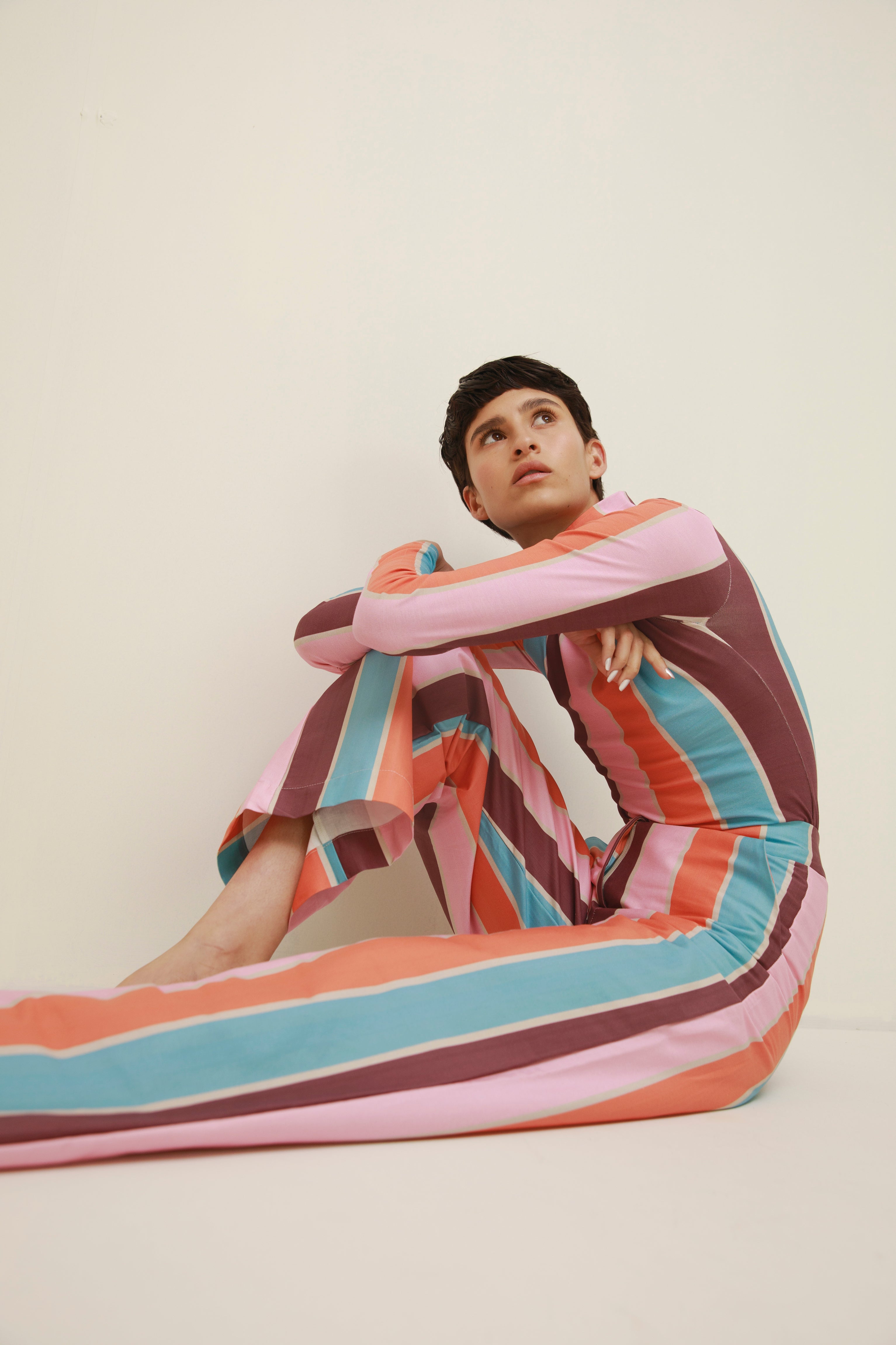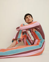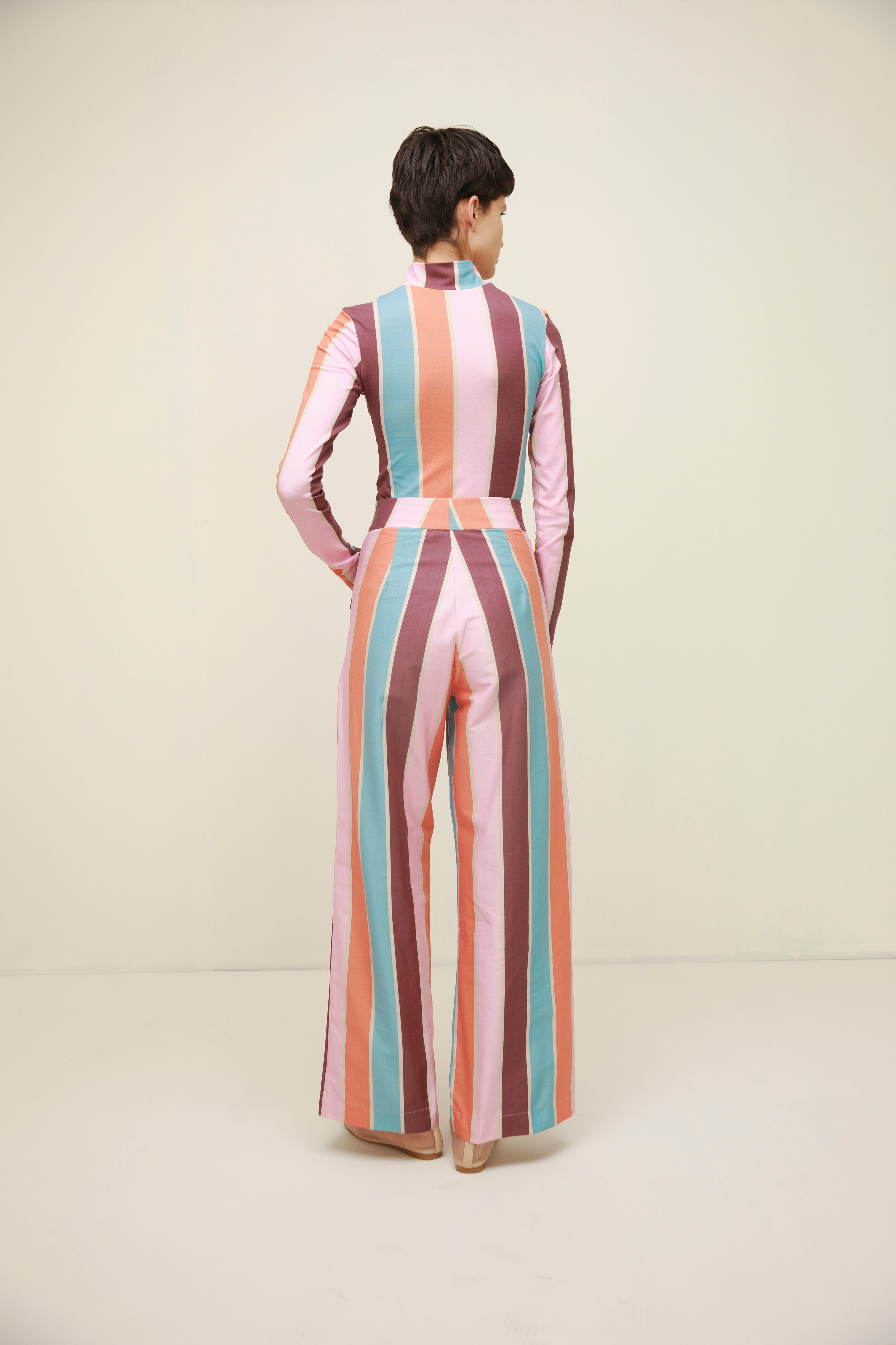 Eleva tu estilo con los pantalones Terra. Con un corte de cintura alta y una silueta acampanada, este diseño presenta un cautivador estampado de líneas coloridas que irradia elegancia sin esfuerzo. Ya sea que los combines con una blusa elegante o un jersey informal, estos pantalones aportarán un toque artístico a cualquier conjunto.